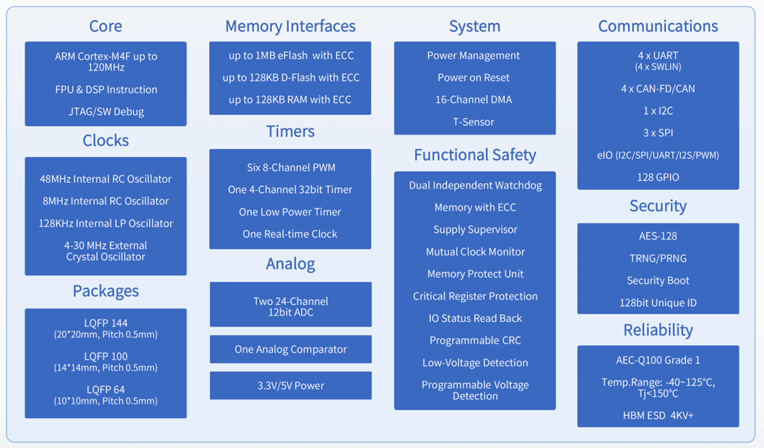 - 雙Bank Flash設(shè)計(1MB PFlash + 128KB DFlash):支持OTA遠(yuǎn)程升級,便于功能迭代。
