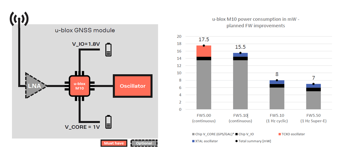 ? 在不犧牲GNSS性能的情況下,功率低于15mW, 與M8相比 u-blox M10僅消耗35%的功率