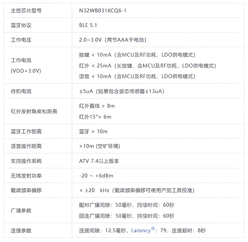 ? 基于N32WB031系列實(shí)現(xiàn)的藍(lán)牙語音遙控器方案具有如下功能特性