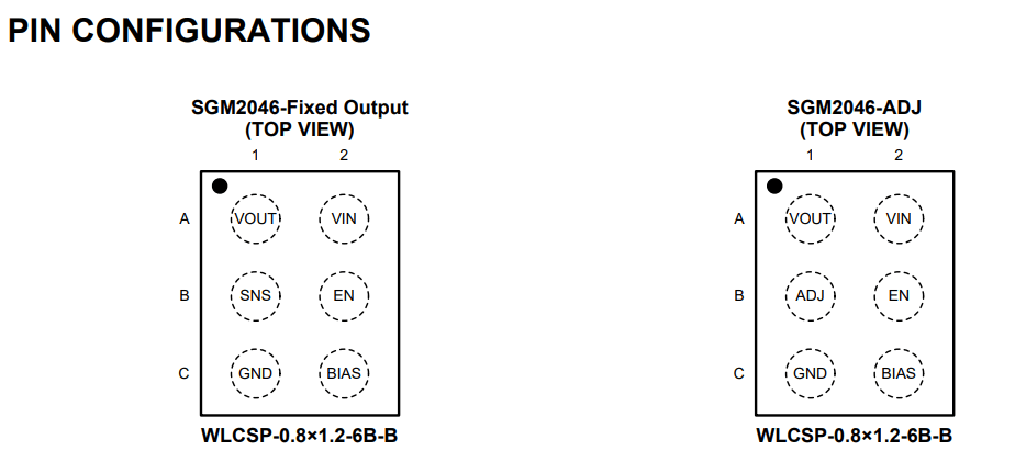 SGM2046采用綠色WLCSP-0.8×1.2-6B-B封裝,其工作溫度范圍為-40℃至+125℃。