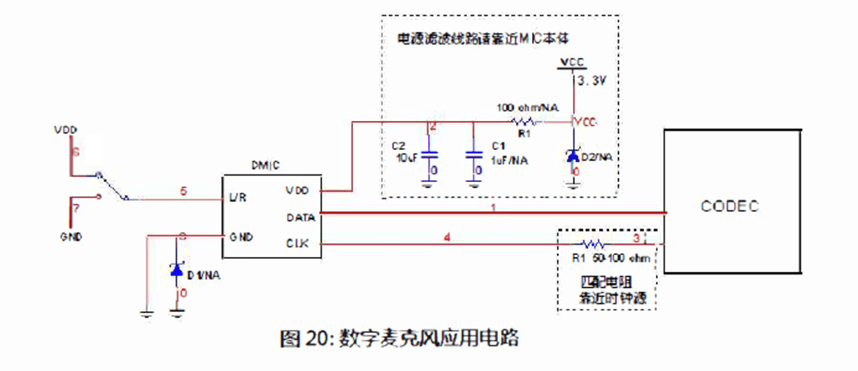- 建議在靠近每個(gè)麥克風(fēng)VDD端放置一個(gè)0.1-1 uF電容 , 消除電源紋波