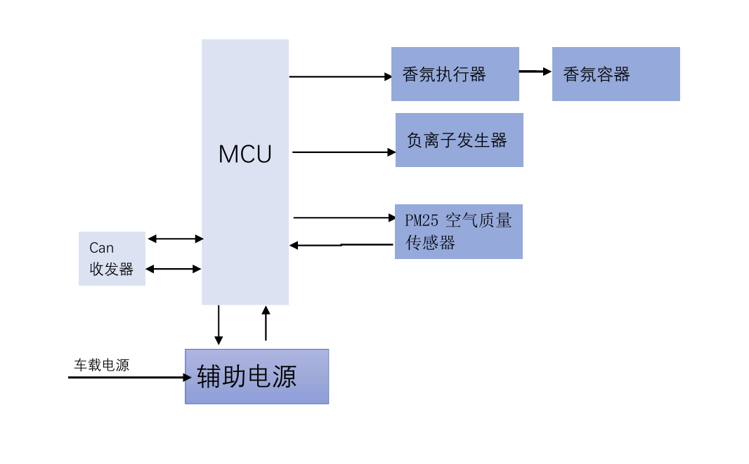 車內香氛系統(tǒng)主要由香氛控制器、?香氛執(zhí)行器、?香氛容器和?香氛瓶組成。香氛控制器包括記憶模塊和控制模塊,用于存儲多種香氛主題并通過車機顯示屏向用戶推送。香氛執(zhí)行器包括?風道、香氛容器、閥門以及?鼓風機,當不同的香氛主題被選擇時,控制系統(tǒng)向對應的執(zhí)行器發(fā)送信號,控制香氣濃度和釋放。
