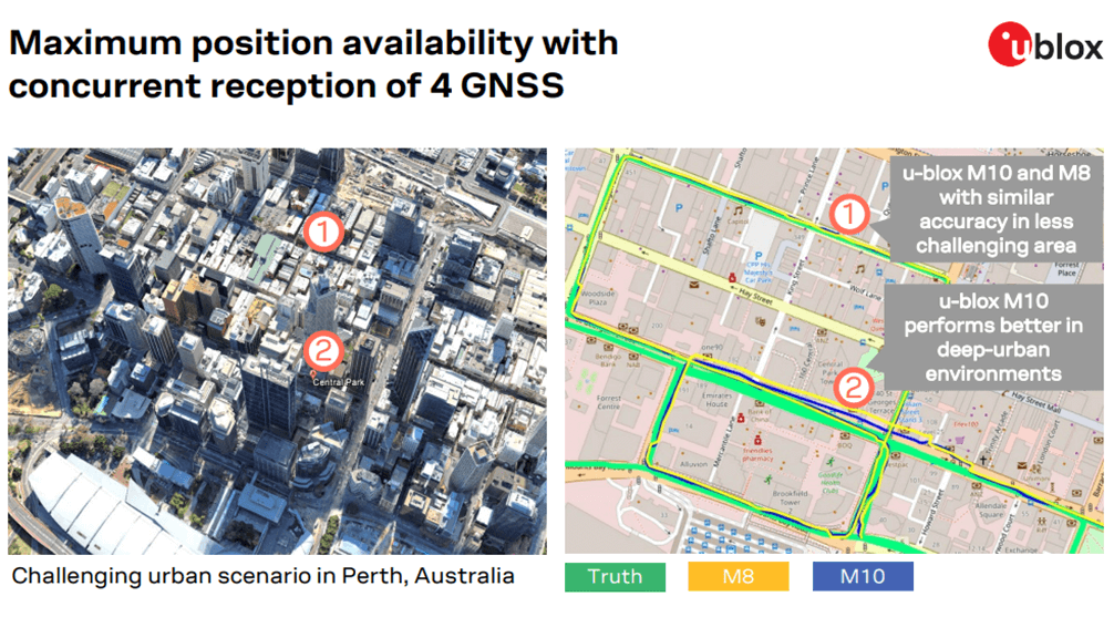 城市峽谷環(huán)境下的測試數(shù)據(jù),M10芯片表現(xiàn)出更好的性能。